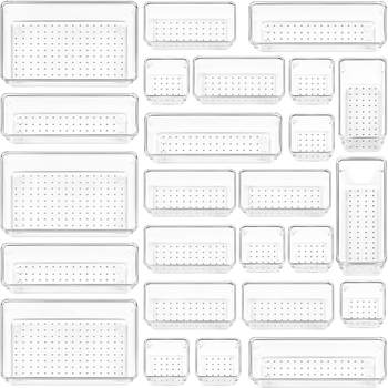 25-PC Modern Transparent PC Storage Boxes Clear Desk Drawer Organizers for Jewelry Kitchen Gadget Storage Office Organizer