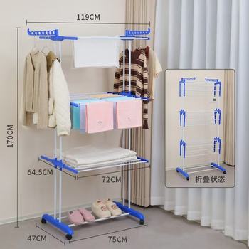 Household Clothes Stands Shoe Racks Balcony Cloth Drying Rack Bedroom Simple Carbon Steel Coat Racks With Wheel