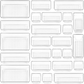 25-delige moderne transparante opbergdozen van PC, doorzichtige bureau-lade organizers voor sieraden, keuken gadgets, opbergruimte en kantoororganisatie